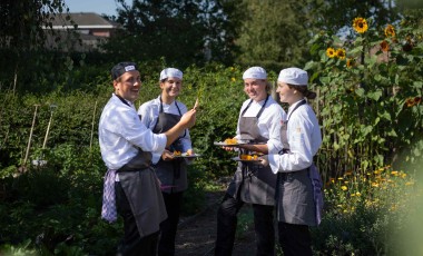The Community Garden is a 170m² organic edible garden on our campus where students, staff, and local residents collaborate on local food production. The garden grows herbs, edible flowers, vegetables, and fruits that are harvested directly for BUas' training restaurant Sibelicious: from sage and rosemary to physalis and Japanese wineberry. Harvested in the afternoon, the produce is served that same evening.