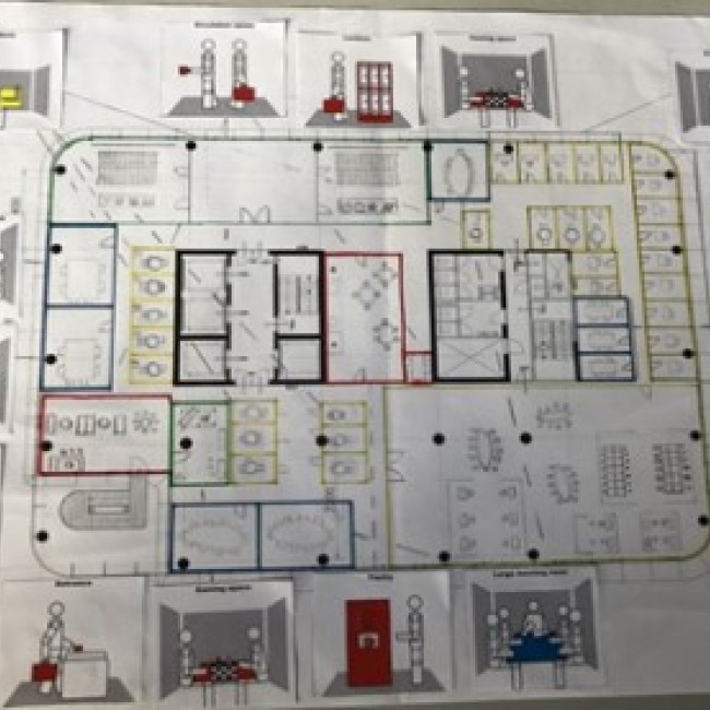 My favourite subject so far is Operations Management, a subject I feel represents Facility Management best. This course focuses on the role of a Facility Manager within a company, and the course consists partly of theory but also of practical assignments. For example, you have to create a ‘company profile’, with all important data of a company on 1 sheet. Or an overview of the workplace with furnished workplaces, as you can see in the photos. We also visited companies to see how things are going in an office. For example, I visited Essent's headquarters in Den Bosch, but also Aecom in the Aldgate Tower in London. The great thing about Operations Management is that first the theory is explained to you, then you start working on an assignment yourself and later on you can see everything you have learned in practice when visiting a company!