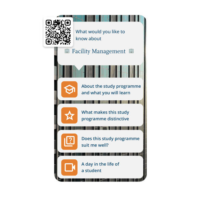 Discover the world of Facility Management. This block focuses on introducing you to the national and international world of Facility Management. Through a project based on your future professional practice, you will not only become acquainted with this world, but you will also learn the basic principles of Operations Management, Finance, and Workplace Management, and lay the foundation for developing skills such as critical thinking, ethical/responsible behaviour and conducting research.